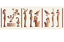 Egypte gestileerde sjablonen ontwerpen. Farao's, mummies, Egyptische hiërogliefen, Egyptische architectuur. Met behulp van sjablonen uit deze catalogus kunt u een hele kamer in Egyptische stijl doe-het-zelf inrichten - er zijn sjablonen voor de muren, het plafond en de vloer. Sets van sjablonen in de vorm van grote thematische panelen stellen u in staat om enorme schilderijen te maken - op de hele muur - net als op de muren van Egyptische tempels en graven.
